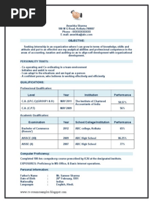 Sample format of cv or resume for apply ca articleship training. We've also included lots of cv examples to get inspired from. How to make resume for ca articleship training, tips to write ca for soon after completion of ca ipcc or any degree people will start searching good ca firms for their articleship. I wish you found this blog on a cv for articleship helpful. Looking for the best cv format. Times new roman, arial, calibri, or fonts like these are best. There's no need to use ornate fonts that are difficult to read; This format is great for jobseekers who want to show off an impressive career trajectory and a record of consistent employment. Here we are providing complete details for how to write a good resume. Cv tips cv formats cover letter personal statement personal qualities. Like a resume its sole purpose is to provide potential employers with a detailed overview of just that. Font choice and font size: A combination of a functional and chronological cv.